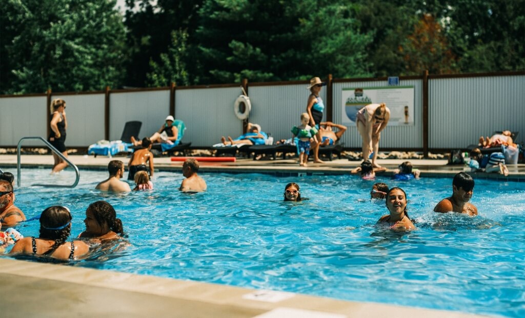 Seasonal camping with some great perks like a pool, playground and jungle gym, basketball courts, shuffleboard, Ninja Warrior course, corn hole, volleyball court, soccer field, live music and entertainment throughout the year, fishing pond and beach, paddle boarding, camp store, and restaurant.